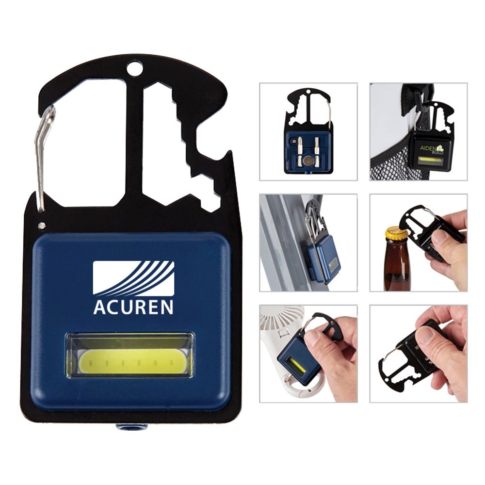 sku: A831The Mini Multi-Tool Work Light is a compact yet powerful companion for any adventure or emergency. Featuring a 100-lumen COB light, it provides bright illumination in low-light conditions. Designed for versatility, it also includes flat head and Phillips screwdriver bits conveniently stored in the back, along with hex tools and a bottle opener for added functionality. The built-in magnet attachment allows for hands-free use on metal surfaces, while split ring and dual carabiner spring clip ensures easy portability on a keychain, belt loop, or backpack. Whether you're camping, tackling outdoor projects, or need a reliable emergency tool, this multi-tool work light is built to perform.
